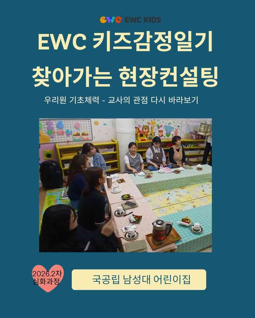 EWC 학습공동체 - 국공립 남성대 어린이집 -우리원 기초체력-교사의 관점 다시 바라보기* EWC에서는 각 어린이집/유치원 들에 대한 핵심교사 밀착형 현장 교육을 실시하고 있습니다.전문적교사 역량강화를 위해 현장의 모습을 전해 드립니다.www.ewckids.comwww.iljishin.com