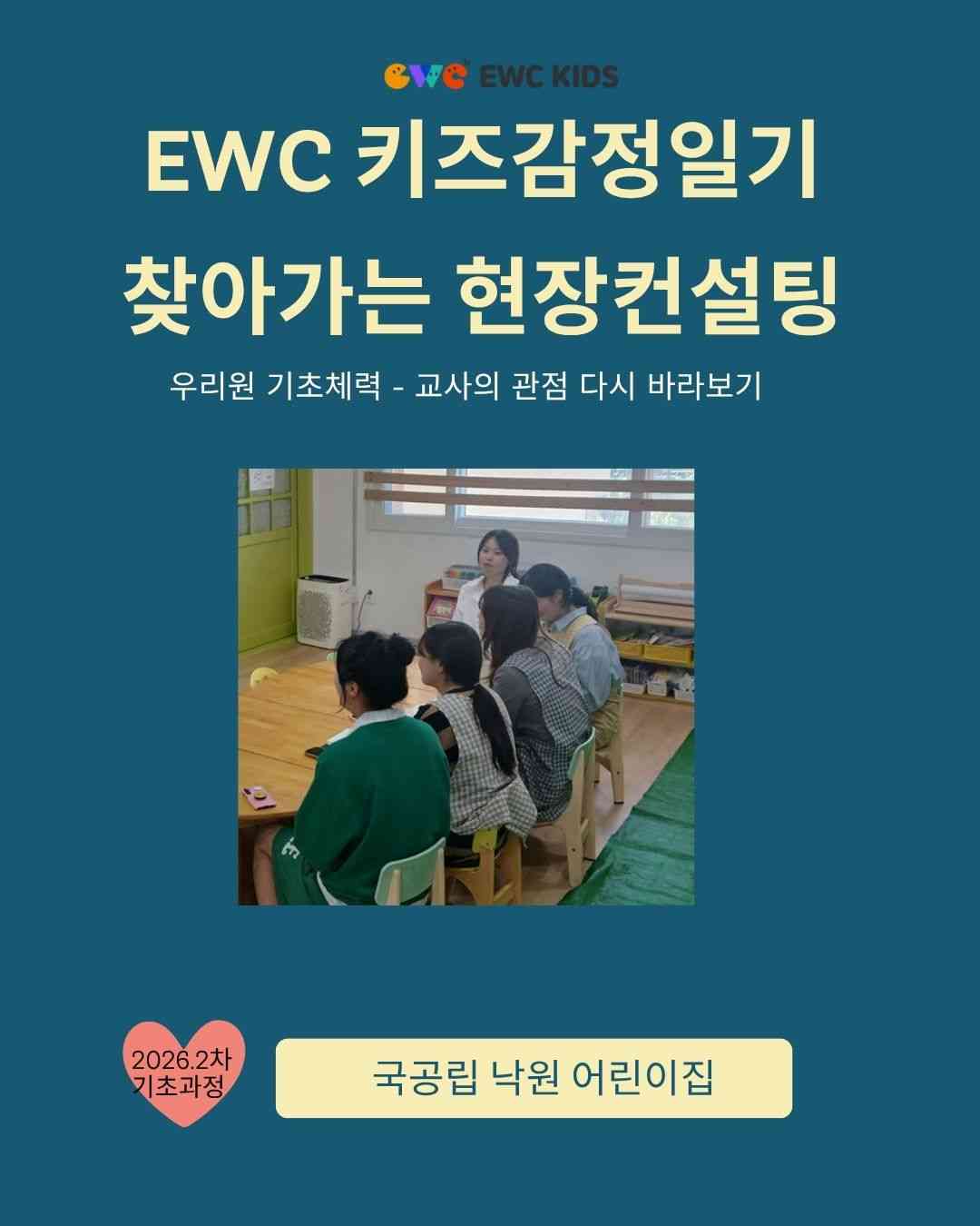 EWC 학습공동체 - 국공립 남성대 어린이집 -우리원 기초체력-교사의 관점 다시 바라보기* EWC에서는 각 어린이집/유치원 들에 대한 핵심교사 밀착형 현장 교육을 실시하고 있습니다.전문적교사 역량강화를 위해 현장의 모습을 전해 드립니다.www.ewckids.comwww.iljishin.com